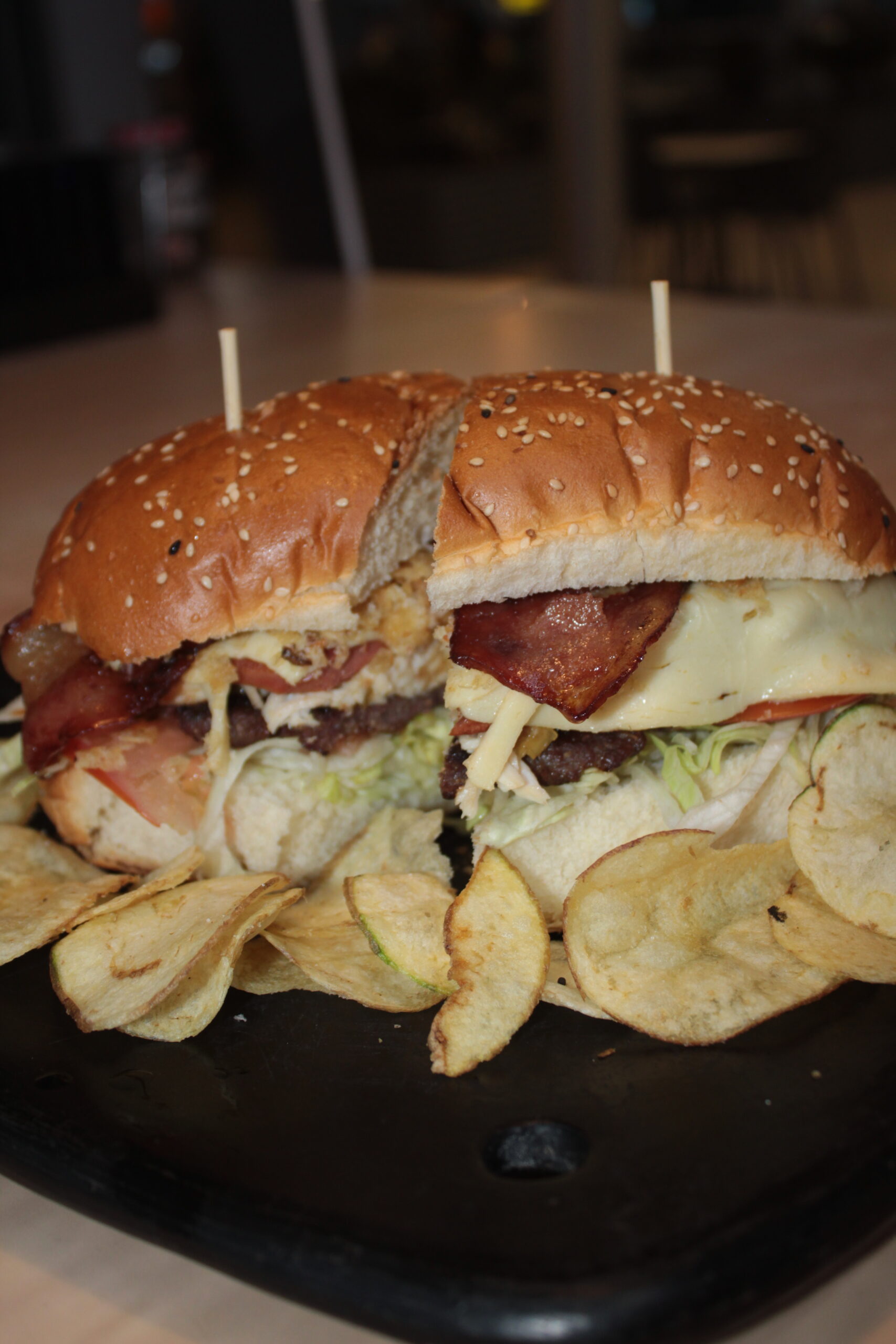 Ingredientes: Pan, carne de la casa, pollo desmechado, salchicha americana, tocineta ahumada, tomate, lechuga y queso en lonja.