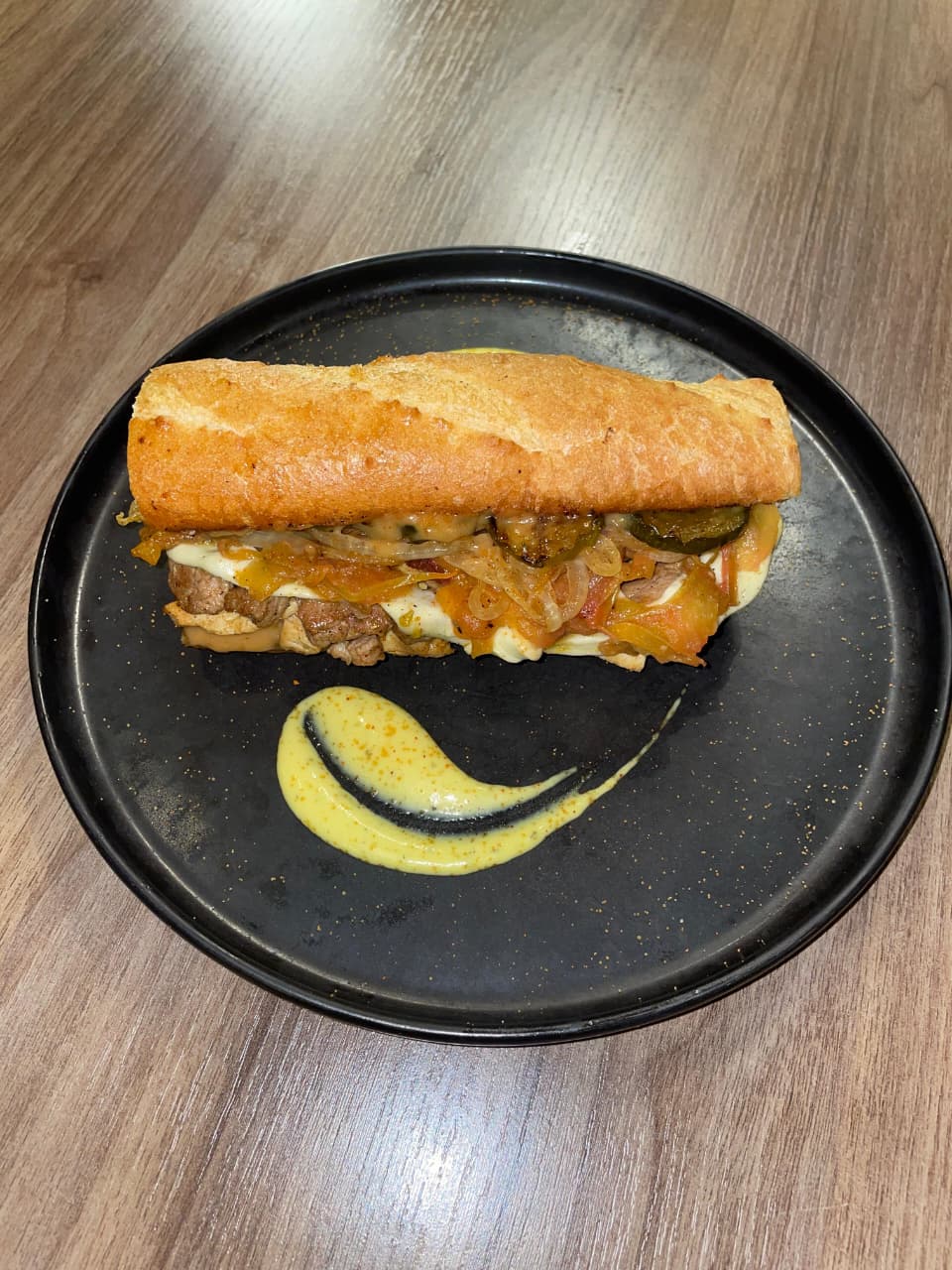 Un pan baguette dorado a la plancha con mantequilla, que abraza una mezcla brutal de pollo y bondiola marinados en especias que despiertan el alma: orégano, cúrcuma, paprika, ajo y ese toque de curry que lo vuelve irresistible. Encima, una capa de queso mozzarella gratinado, tomates y cebollas asadas, y pepinillos grille que explotan sabor. Todo bañado con nuestra adictiva salsa Chick Fil A, arriba y abajo, como debe ser. No es un sándwich… es una experiencia MONSTER. 💥