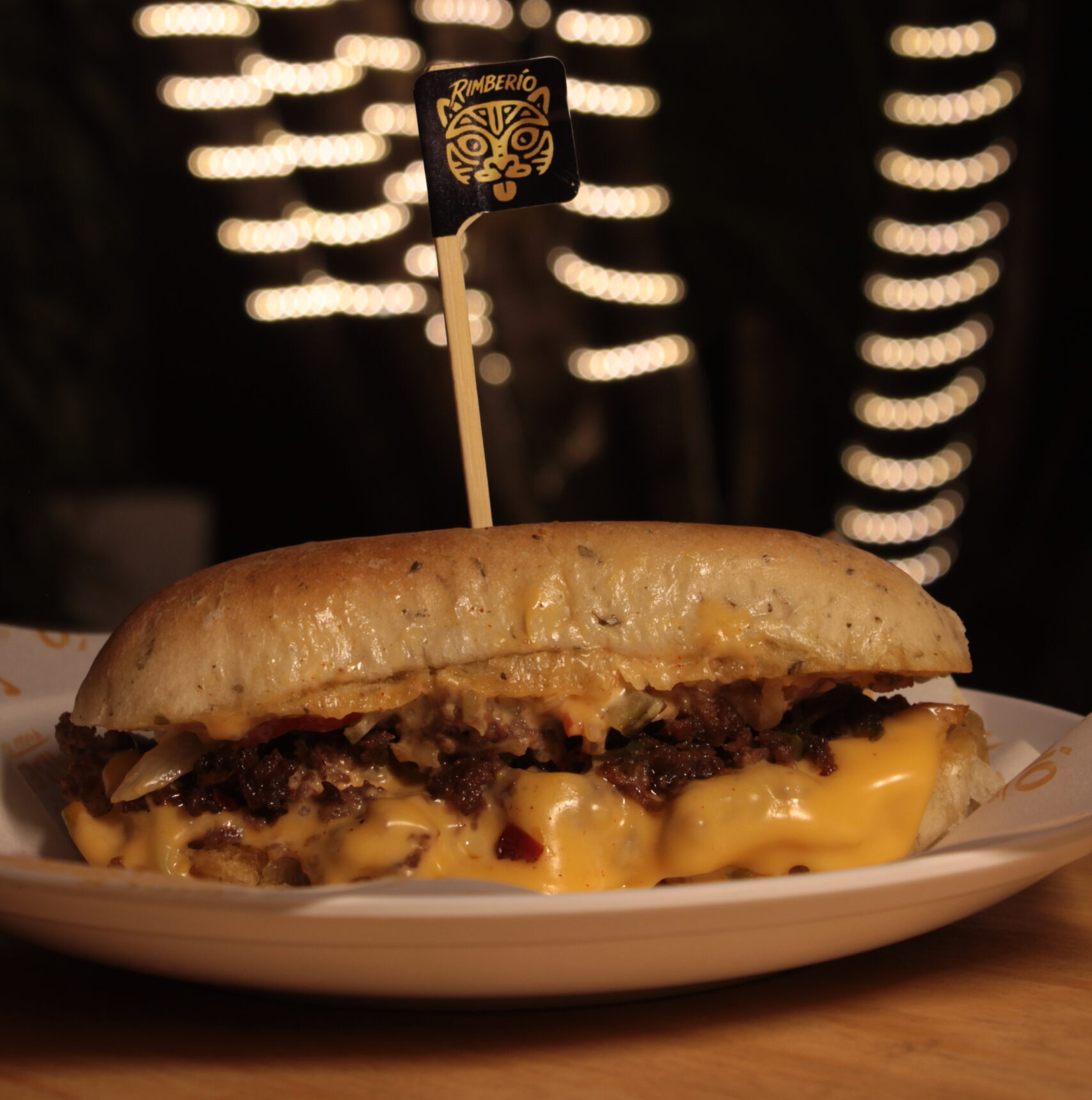 El rimberio phily cheese es nuestra propia interpretación de clásico “Philadelphia cheese steak” con un pan artesanal con orégano hecho en casa y una cremosa mezcla de carne angus, Julianas de pimentón y cebolla grilladas y el fabuloso queso americano. Un embrujante sabor!